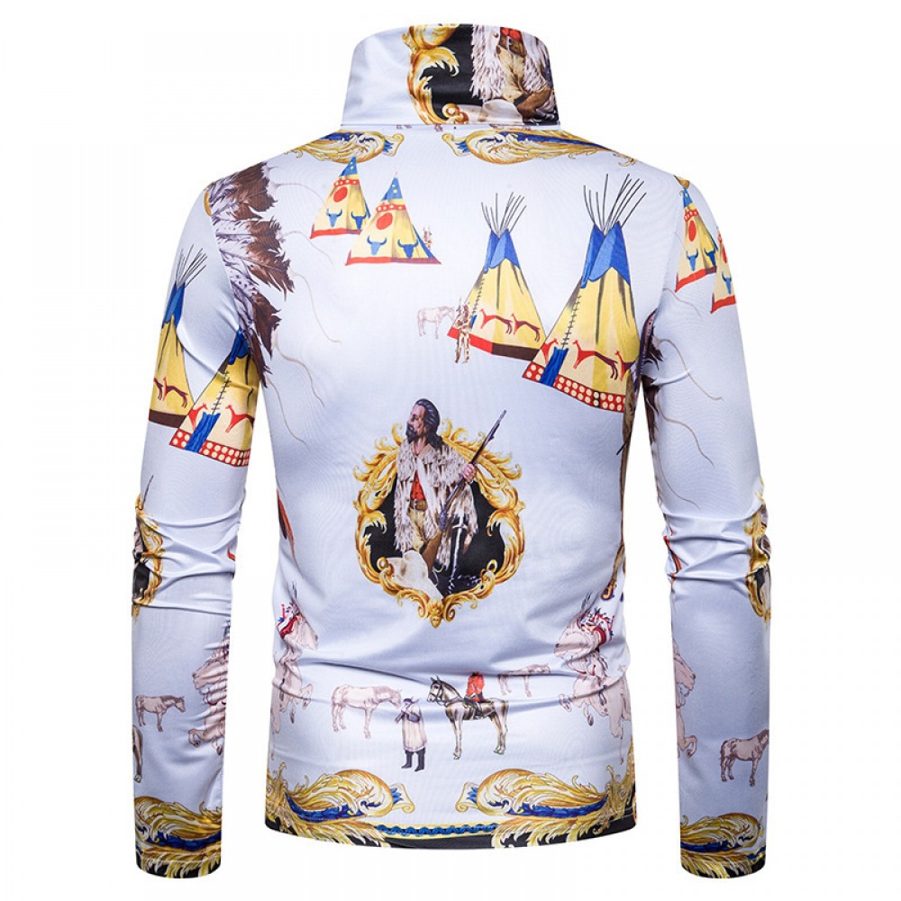 Men's Large Size 3D Printing High Neck Long Sleeve T-Shirt Bottoming Shirt