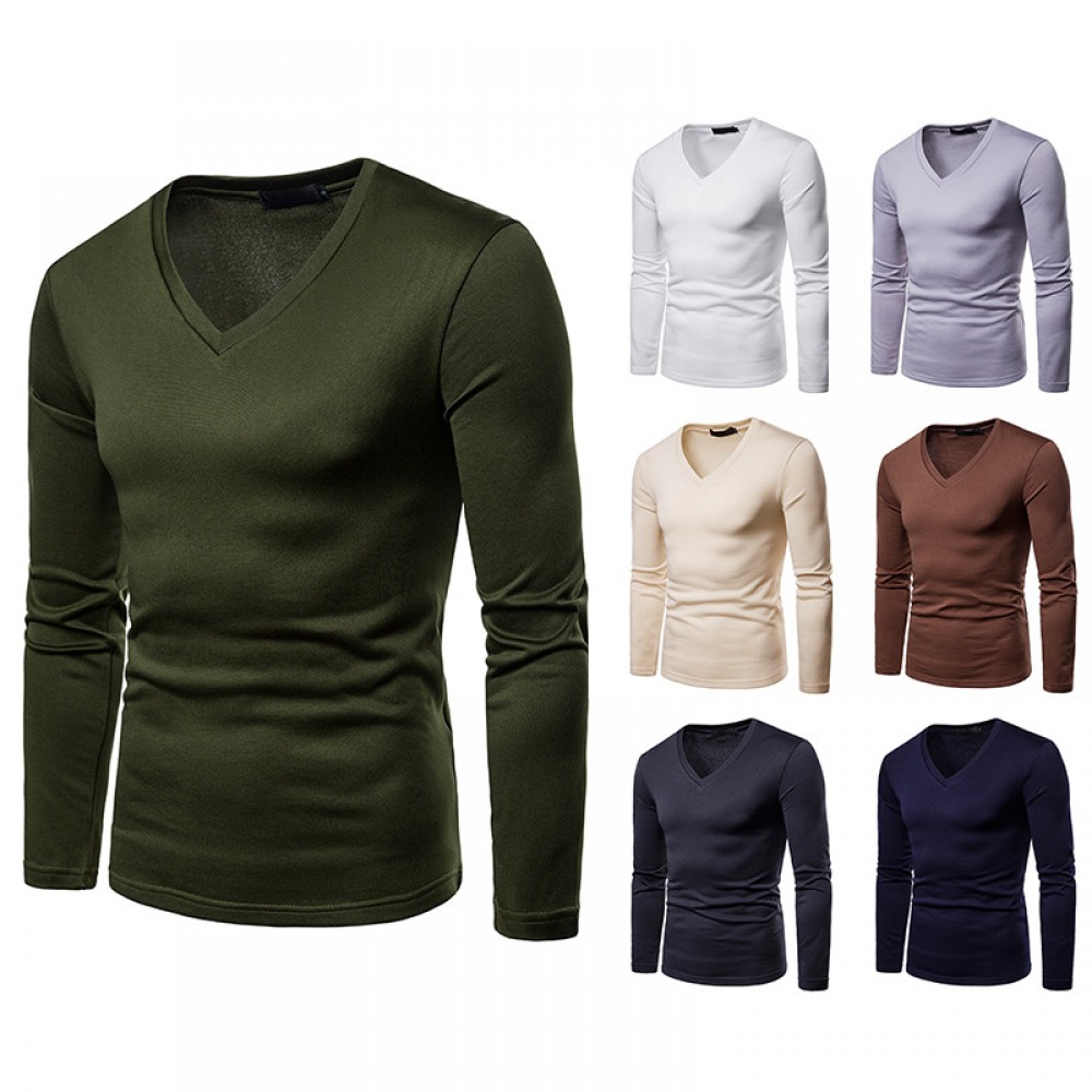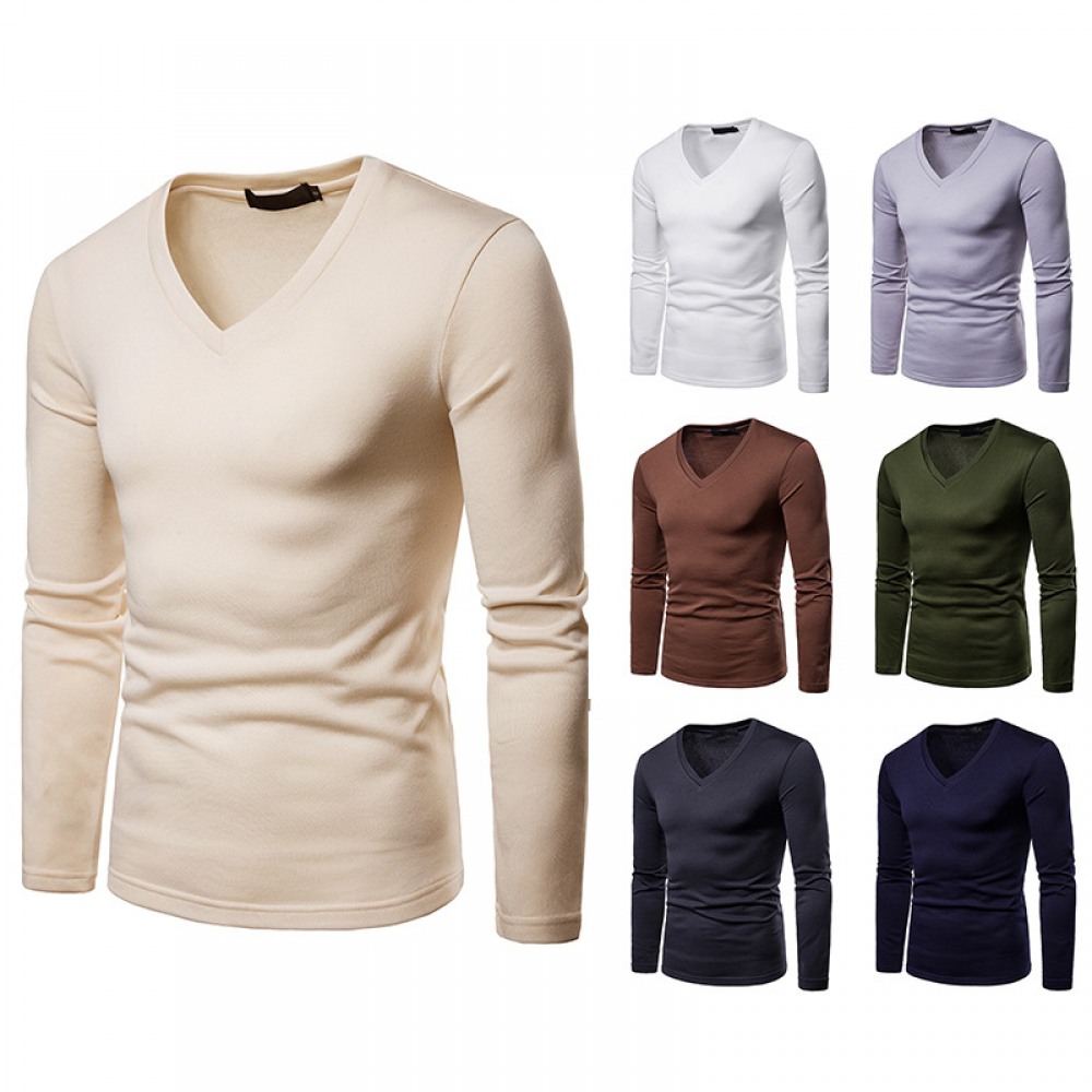 Men's Plus Size Plus Velvet Warm Long-Sleeved V-Neck T-Shirt Base Shirt