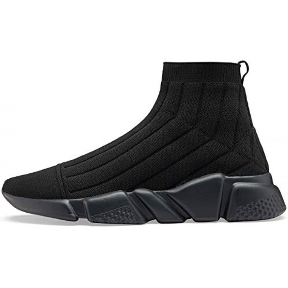 Men's Running Shoes Breathable Knit Slip On Sneakers Lightweight Athletic Shoes Casual Sports Shoes High Top All Black