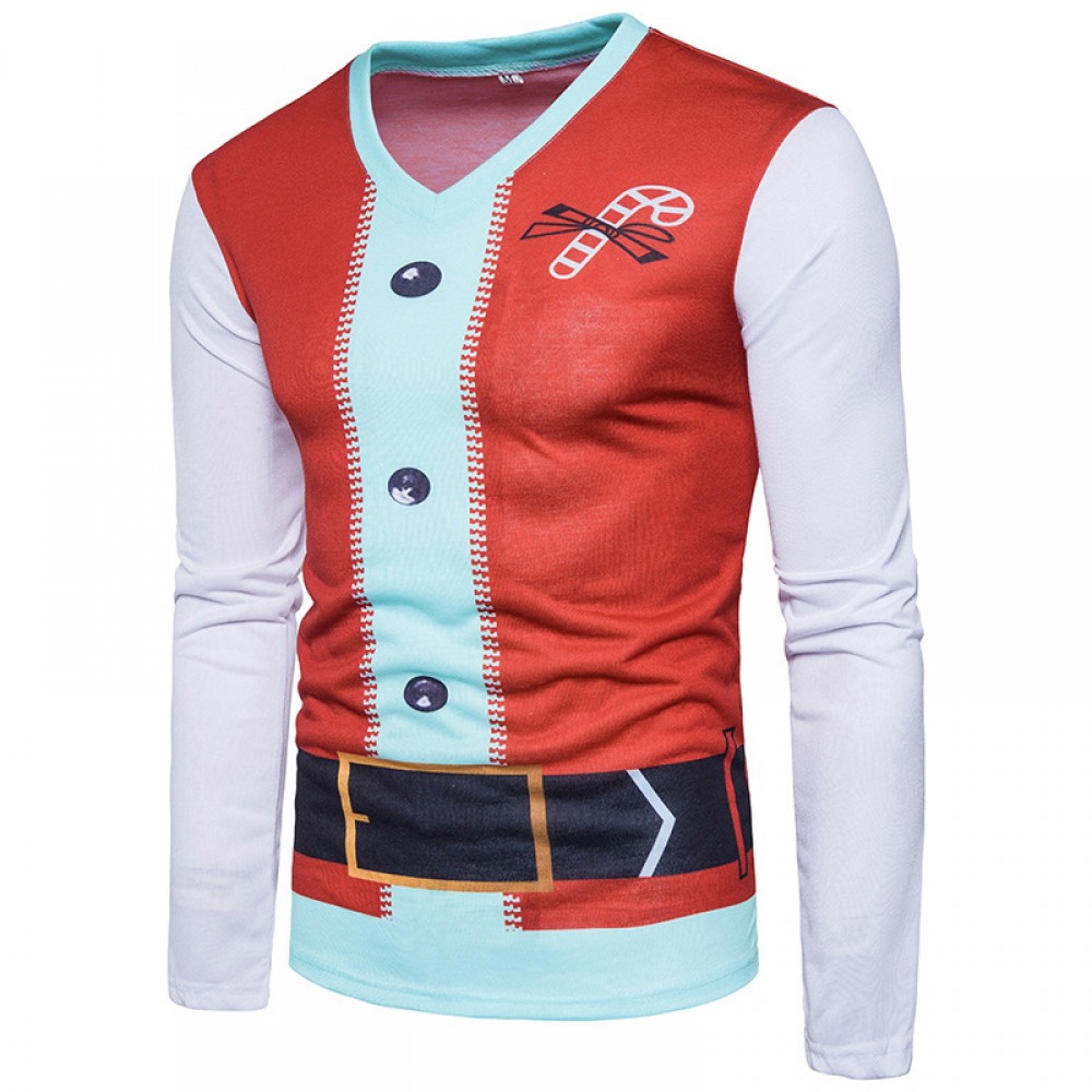 New Fashion Men's New Round Neck 3D Santa Claus Clothing Printing Long-Sleeved T-Shirt
