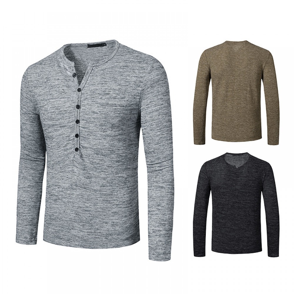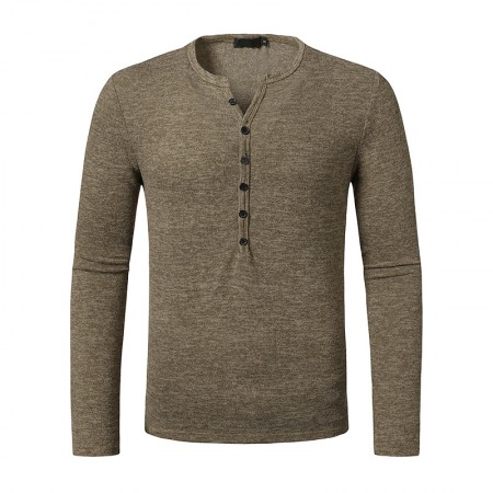 New Hollow Men's Autumn and Winter Long-Sleeved Base Waffle Henry Collar T-Shirt