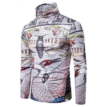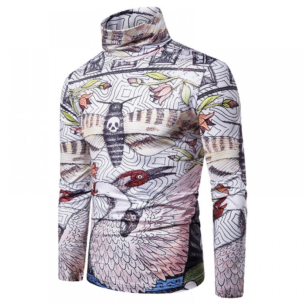 New Men's Large Size 3D Animal Print High Neck Long Sleeve T-Shirt Bottoming Shirt