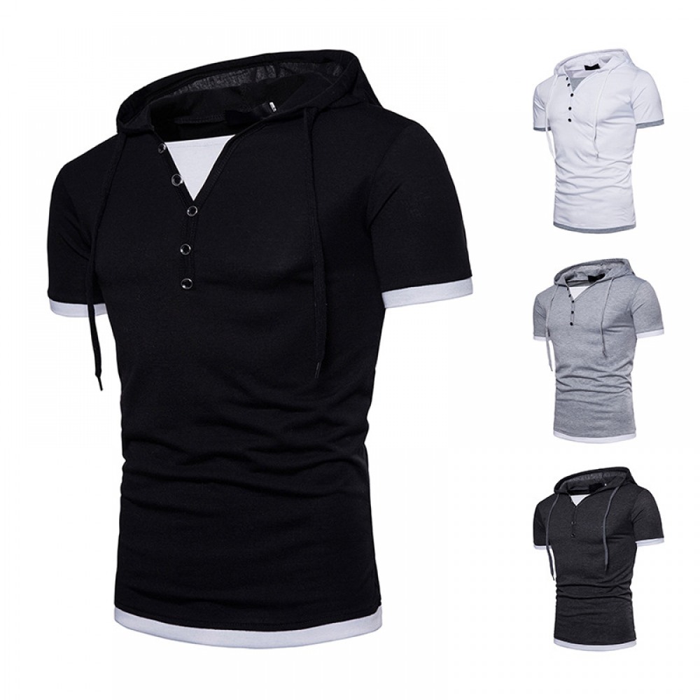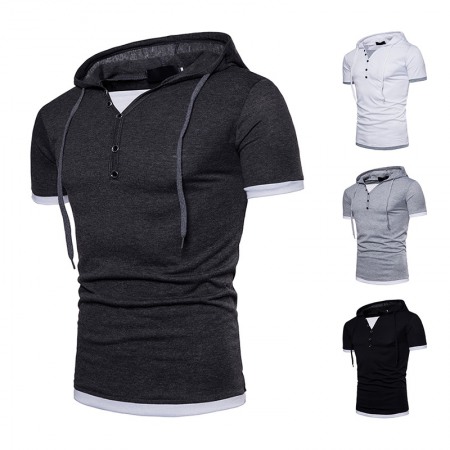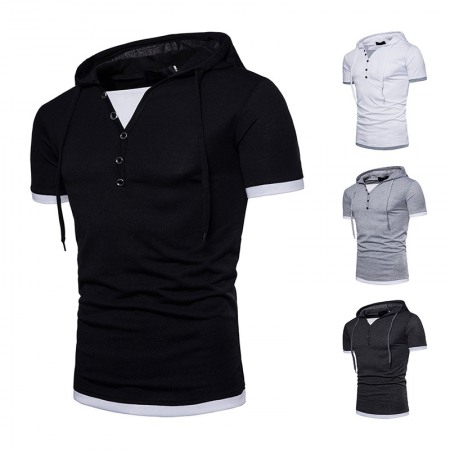 New Summer Men's Hooded Striped Lapel T-Shirt Mens Lapel Short Sleeve