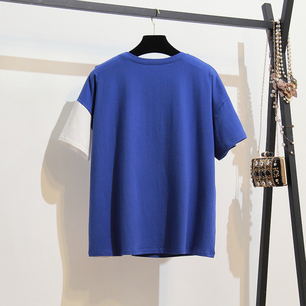 Round Neck Fat Sequined Top New Oversized Women's Loose Embroidered Short-Sleeved T-Shirt